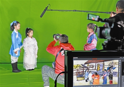 上图 “快到我的画里来”体验活动拍摄现场。今晚报记者 高莹辉摄