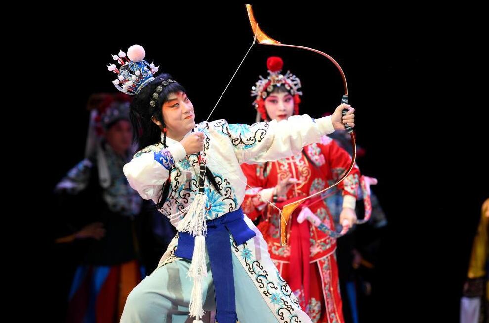2020年9月5日,河北石家庄大剧院,石家庄市河北梆子剧团演员在表演剧目《穆桂英挂帅》。为进一步丰富市民的文化生活,该市组织市属文艺院团开展经典剧目惠民演出活动,为市民送上一道道文化大餐。