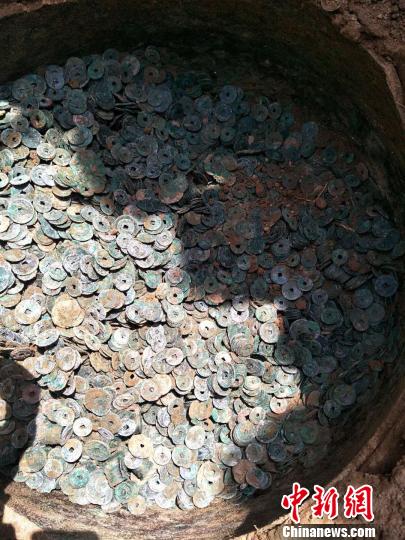 瓮中的古钱币。南和县文保所供图