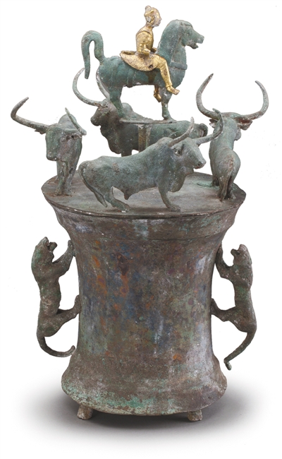 四牛鎏金骑士贮贝器
