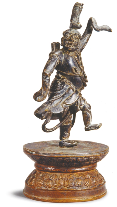 此塑像高23.2厘米,头顶一靴,身背葫芦,双目圆睁,右腿抬起,作舞蹈状。人物诙谐,舞姿粗犷。