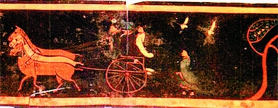 湖北包山楚墓出土漆画(局部)中绘有两只大雁,象征“执雁之礼”。
