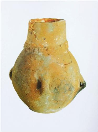 褐陶四系壶高10厘米,口径5厘米,底径5厘米,泥质褐陶,直口、长径、鼓腹,腹施四系,平底,通体磨光,青铜时代出土文物。