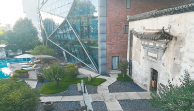 在黎阳老街的某家民宿,古建筑融入现代建筑群中,增添了不少时尚感。