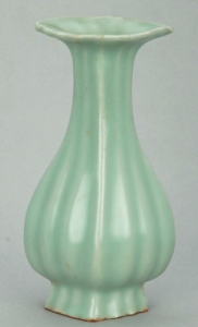 南宋龙泉窑青釉菱口瓜棱瓷瓶。
