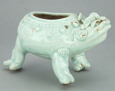 青白釉大口蟾蜍形三足瓷水盂。