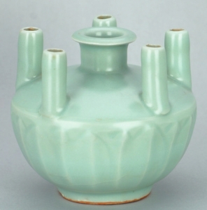 青釉五管瓷器。