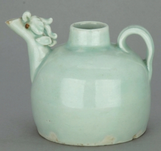 青白釉凤首流瓷水注。