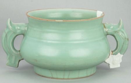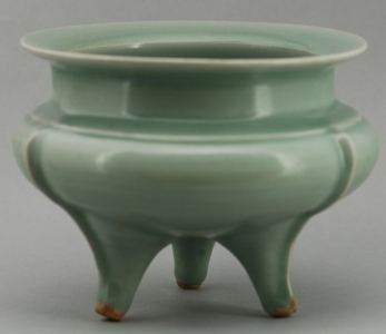 南宋龙泉窑青釉三足鬲式瓷炉。