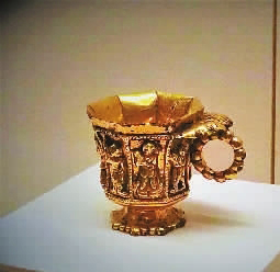 何家村窖藏出土的伎乐纹八棱金杯 本报记者 李韵摄/光明图片