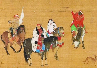 元代刘贯道所绘《元世祖出猎图》(局部),现藏于台北故宫博物院。