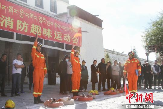 中新网拉萨11月9日电 (何蓬磊 赵延)拉萨布达拉宫管理处、西藏拉萨市布达拉宫消防大队9日共同举办第二届布达拉宫消防趣味运动会,再铸守护遗产的“防火墙”。