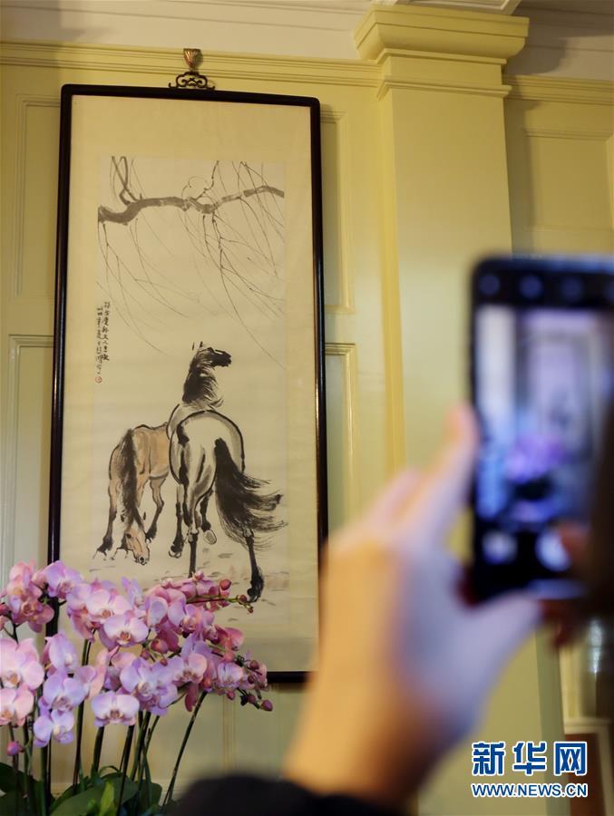 这是上海宋庆龄故居内悬挂的徐悲鸿赠送的画作(1月25日摄)。新华社记者 刘颖 摄
