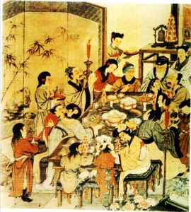 腊月初八吃“腊八粥”,奶奶凌晨亲自下厨烧粥。娃娃们用筷子数莲子、粟子、枣子和花生米,看谁运气好。“腊八”后,过年气氛愈来愈浓了。市面上熙熙攘攘,行人准备年货、打米酥、蒸年糕、送年礼、点百果灶、贴春联和“喜门钱”。