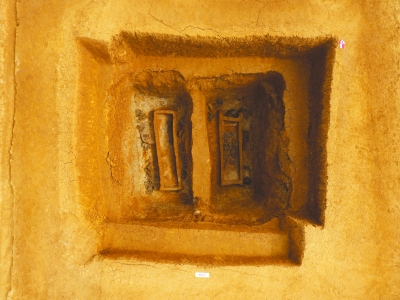 图为航拍湖北沙洋城河新石器时代遗址的M202。
