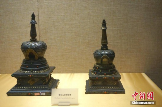洛阳博物馆藏、原藏北京故宫慈宁宫大佛堂的镶松石银喇嘛塔。韩章云 摄