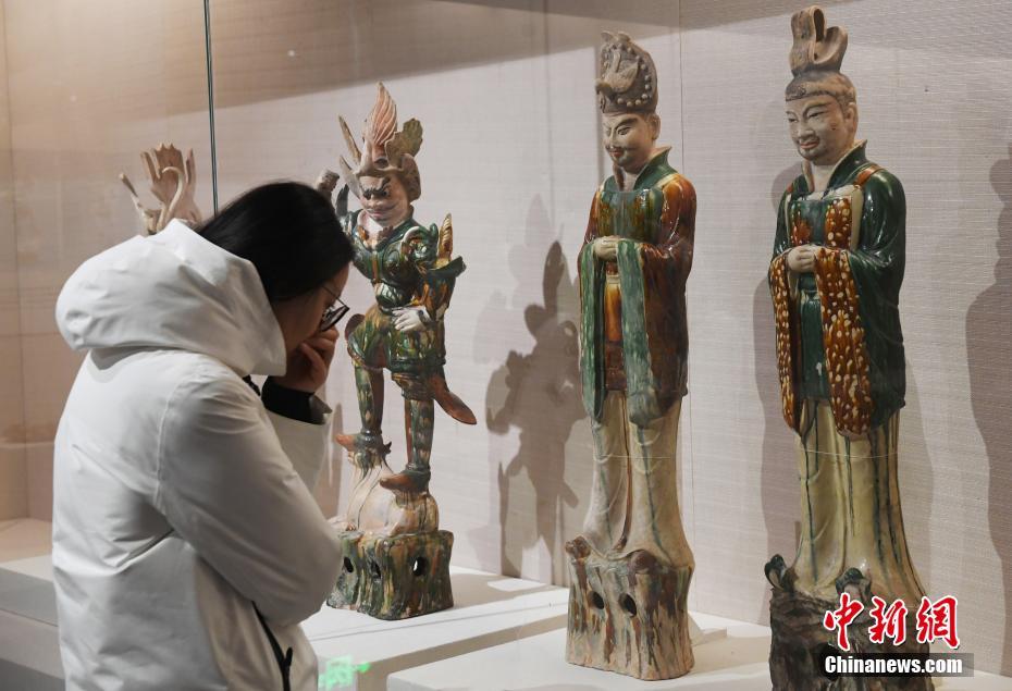 1月2日,“我从安国来——唐定远将军安菩夫妇墓出土文物特展”在位于兰州的甘肃省博物馆展出。本次展览共展出99件(组)洛阳安菩夫妇墓出土文物精品,骆驼、马、镇墓兽、天王俑等三彩体形之大、造型之美、釉色之亮丽堪称中国唐三彩之最中新社记者 杨艳敏 摄
