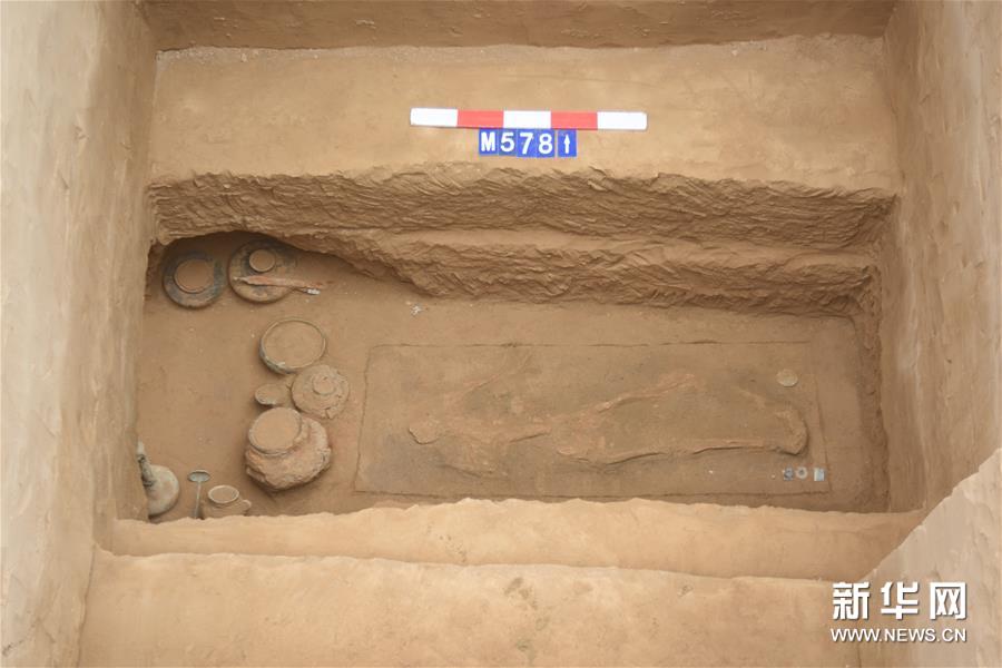 这是出土鹅首曲颈青铜壶的墓葬(资料照片)。新华社发(三门峡市文物考古研究所供图)
