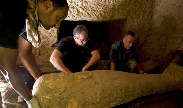 埃及旅游和文物部6日宣布,一支埃及考古队日前在吉萨省塞加拉地区发掘出至少13具保存完好的2500年前的木棺。