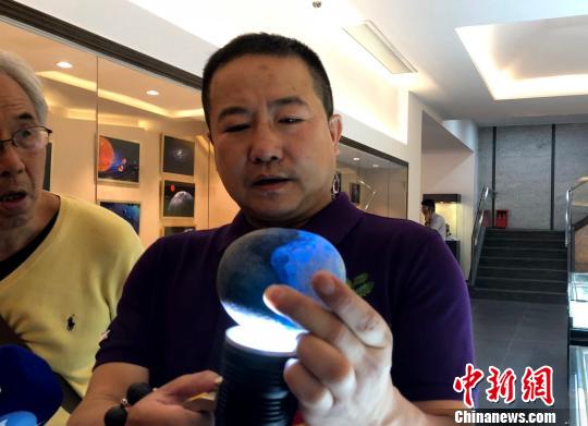 陨石科普馆馆长何建中介绍,陨石是指从行星空间穿过地球大气层烧灼后达到地球表面的流星残留体,是来自地球之外的尊贵“客人”,不但具有科研价值、收藏价值,也有相当的审美价值。他向记者展示馆藏的一块玻璃陨石,当用灯光照射时,原来灰蒙蒙的陨石表面发出蓝、紫等色彩,如宝石般璀璨。
