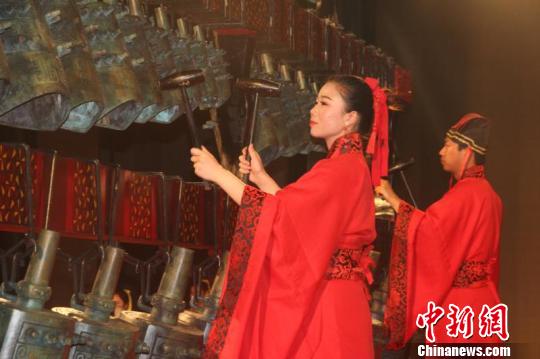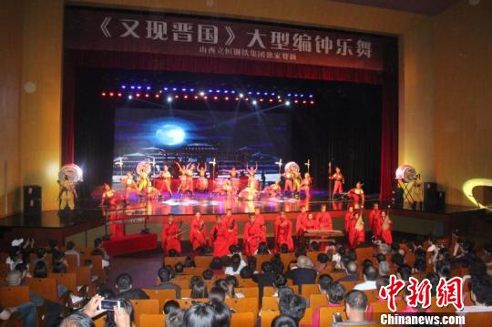 中新网临汾4月30日电 (屈丽霞 靳佩佩)29日晚,一场编钟乐舞晚会在山西临汾曲沃县晋都剧院举行。作为晋侯酥钟出土地,当地成立晋风编钟乐团,复原晋侯酥钟,并与同时代复原的编磬、陶埙、排箫、古琴、古瑟、笙、建鼓等一起配合,演奏融合创新的古曲。