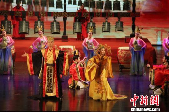 “晋侯编钟乐舞”《又现晋国》取材于公元前632年晋楚两国在城濮地区进行的争夺中原霸权的首次大战,晋国打败了强大的楚国,成为中原的霸主。 张荣 摄