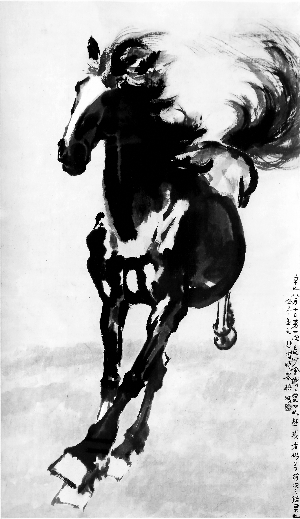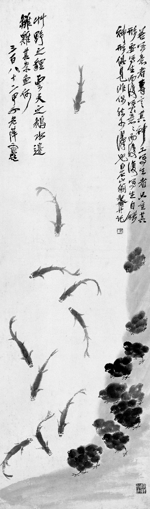 齐白石1926年作品《雏鸡小鱼》与徐悲鸿1941年作品 《奔马》。