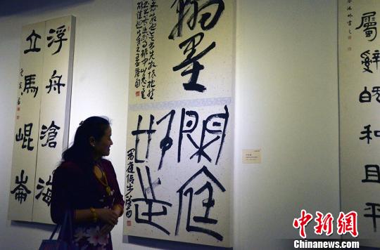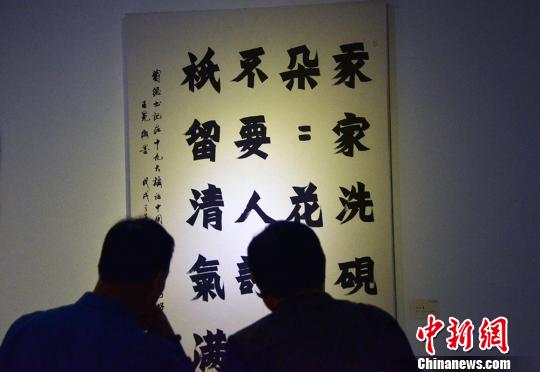 中新网乌鲁木齐5月17日电 (记者 孙亭文)17日,由新疆社会科学界联合会主办、新疆书法艺术榜书研究中心承办的“翰墨榜韵——首届新疆榜书展”在位于乌鲁木齐的新疆当代美术馆开幕。新疆及内地省市书法家的百幅书法作品亮相,为当地民众奉上一场书法艺术的饕餮盛宴。