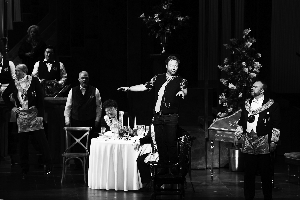 据悉,此版《纽伦堡的名歌手》于2017年3月在英国皇家歌剧院率先亮相。前天下午,《纽伦堡的名歌手》在舞美艺术中心进行了一次完整的预彩排,在五个半小时的时间里精彩演绎了剧中的每一个唱段、每一个角色。国家大剧院合唱团则在这部歌剧中投入了由90余人组成的大编制阵容,在剧中第二幕“混乱的街道情景”,尤其是各种动物形象的出现,给人极其荒诞、癫狂、亢奋和莫名的刺激感。