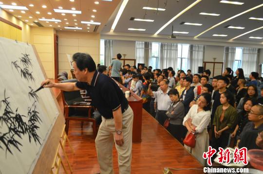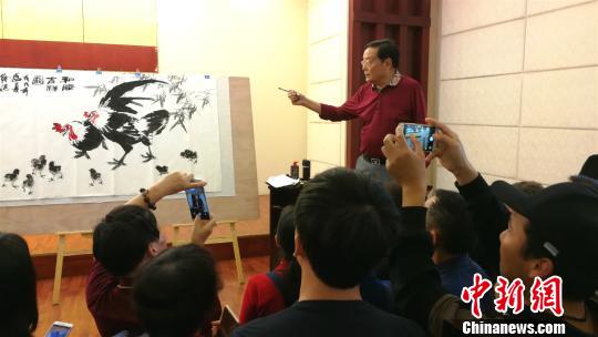 图为中国花鸟画研修院院长徐湛在“公益大讲堂”上现场教学。 钟欣 摄