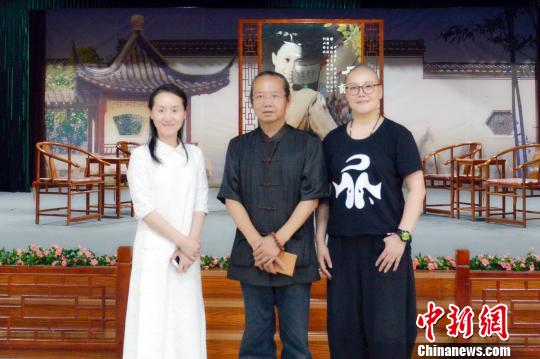 福建省芳华越剧团团长黄国庆(中),福建省芳华越剧团副书记、副团长郑全(左),福建省芳华越剧团一级演员沈敏共同出席该剧目媒体及戏迷见面会。福建省芳华越剧团供图