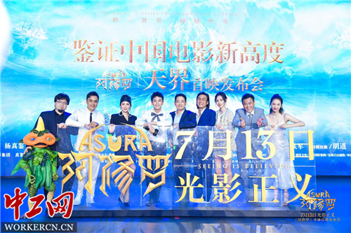 发布会最后,与会领导嘉宾共同揭开“《阿修罗》光影正义”的大幕,所有主创成员和嘉宾领导合影留念。