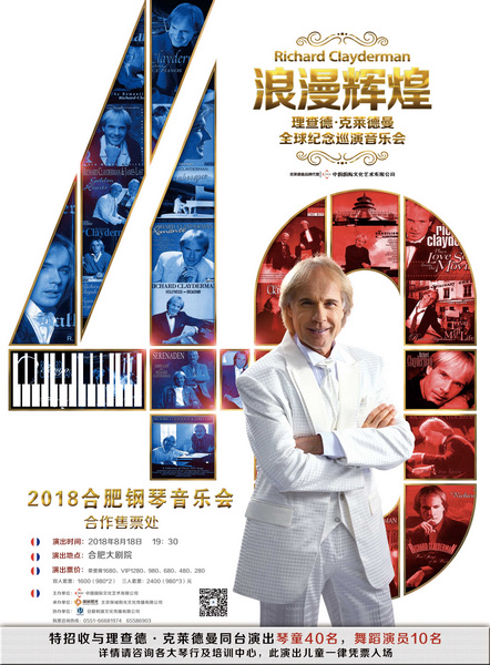 或许,《秋日私语》、《致艾德琳》、《秋日私语》、《爱的纪念》等等诸多脍炙人口 的名曲早已被观众熟悉,8月15日,理查德克莱德曼将现身金华中国婺剧院,与你浪漫一夏,8月18日,他也将抵达合肥大剧院,完成他的音乐旅程。近距离观看一场水平极高的理查德克莱德曼的专场音乐会,可谓是一件可遇不可求的事情,这一次,他如约而至,让我们一起与他共度浪漫之约。