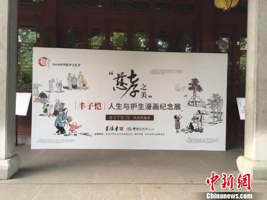 中新网杭州8月1日电 (王题题)8月1日,千年古刹杭州灵隐寺内,为期一个月的“慈孝之美”丰子恺人生与护生漫画纪念展开展,展出丰子恺所作的关于人生、护生两大主题的百余幅经典漫画,为民众献上一场展示慈孝之美、护生之善的精神大餐。
