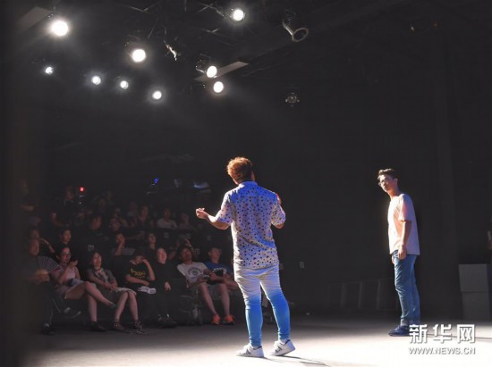 8月4日,在北京9剧场,中国传媒大学小白杨剧社表演话剧《安提戈涅.remix》。 第十七届“金刺猬”大学生戏剧节8月3日至19日在北京举行。本届戏剧节共收到来自全国65所高校的89部报名作品,最终选出14部优秀剧目参加展演。