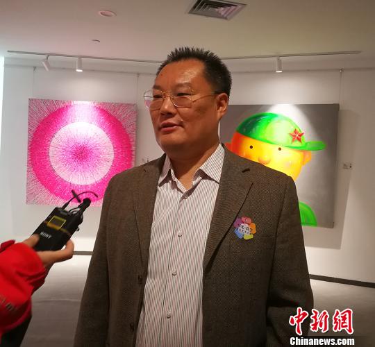 大展策展人张桨接受采访。 杨杰英 摄