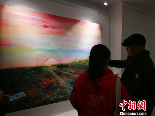 著名艺术家李天元正在介绍自己的作品《路》。 杨杰英 摄