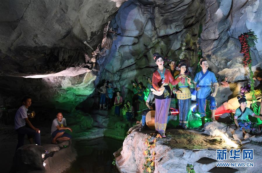游客在广西柳州市鱼峰山观看刘三姐雕塑(8月9日摄)。 刘三姐的故事早在唐朝就有传说,而后出现在宋人笔记里。穿透千年的“刘三姐文化”历久弥新,成为中华民族优秀传统文化的组成部分,彰显深沉的文化自信,其背后的密码是什么? 新华社记者 陆波岸 摄