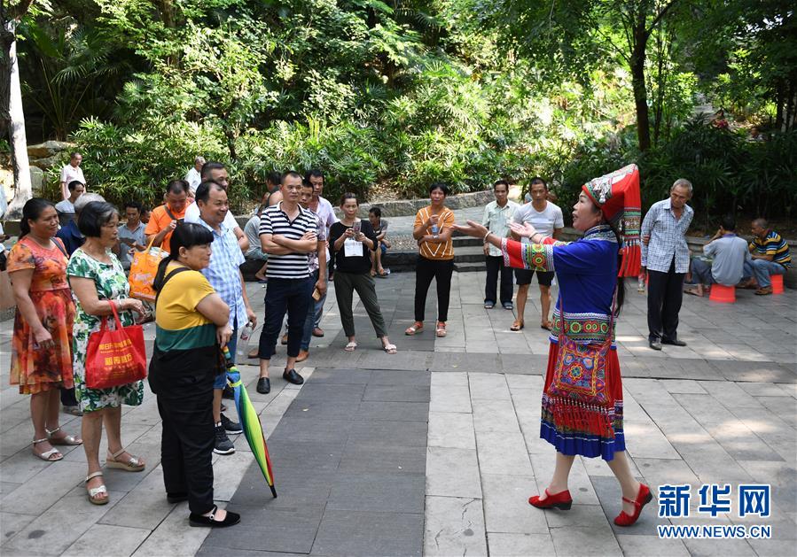 在广西柳州市鱼峰山,一名山歌爱好者在唱刘三姐歌谣(8月9日摄)。 刘三姐的故事早在唐朝就有传说,而后出现在宋人笔记里。穿透千年的“刘三姐文化”历久弥新,成为中华民族优秀传统文化的组成部分,彰显深沉的文化自信,其背后的密码是什么? 新华社记者 陆波岸 摄