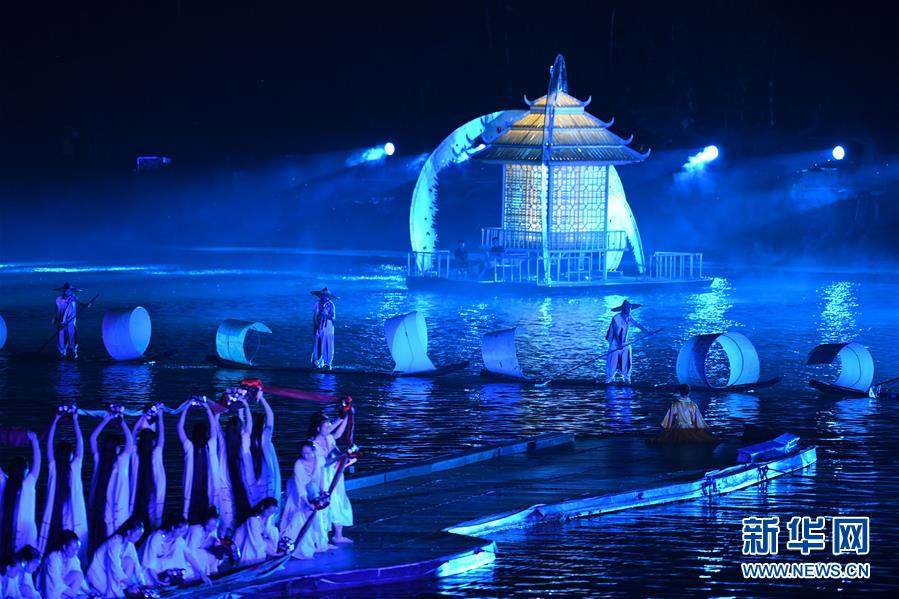 这是广西阳朔县《印象·刘三姐》实景演出现场(8月14日摄)。 刘三姐的故事早在唐朝就有传说,而后出现在宋人笔记里。穿透千年的“刘三姐文化”历久弥新,成为中华民族优秀传统文化的组成部分,彰显深沉的文化自信,其背后的密码是什么? 新华社记者 陆波岸 摄