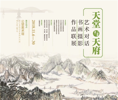 书画摄影作品联展是本次“天堂与天府·艺术对话”活动的重要内容。本次展览以庆祝改革开放40周年为主题,荟萃了两地艺术家精心创作的美术、书法、摄影作品240件,其中美术作品100件、书法作品60件、摄影作品80件。这些作品,从不同的视角,以不同的艺术形式,展示了改革开放40年来特别是新时代“天堂”“天府”的惊鸿巨变,展示了成都“创新创造、优雅时尚、乐观包容、友善公益”的天府文化和杭州“干在实处、走在前列、勇立潮头”的精神风貌,展示了两地艺术家深入生活、潜心创作的时代风采。这是一场艺术的盛宴,更是一曲时代的赞歌。
