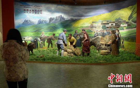纪念馆内的藏区群众支援红军雕塑再现当年情景。 刘忠俊 摄