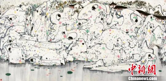 展览中最引人注目的当属吴冠中创作于1988年的《狮子林》。该作品是吴冠中最为重要的艺术作品之一。该画所表现的苏州狮子林和吴冠中一个重要理论观点有关,即“风筝不断线”的理论。他认为,绘画抽象就像是放风筝,风筝是作品,是“从生活中来的素材和感受,被作者用减法、除法或别的法”,抽象成的某一种艺术形式,而观众是天空,要让风筝飞上天空,艺术家手中“须有一线联系着作品与生活中的源头”。