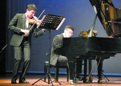 本报讯 3月23日,由新加坡中国学会主办的“从莫扎特到陈刚”音乐会在新加坡中国文化中心举行。音乐会由新西兰的钢琴演奏家林晨与来自新加坡的小提琴演奏家骆竣宏联袂呈献。