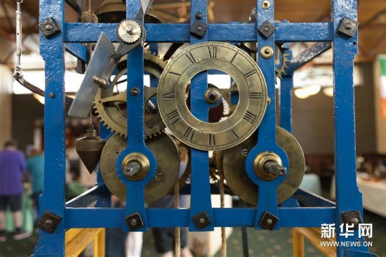 一台近2米高的古老机械钟表装在铁架子上,上面是大小不一的齿轮,下面的钟摆足有一米长。由于没有传统钟表的华丽箱体包裹,这台1790年的钟更像是一台机械设备。“难以置信!还很准时!”一名参观者对着自己的手表发出赞叹。