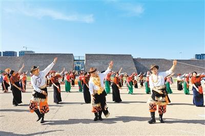 本报讯(记者 闫珅)5月11日下午,西安首个大型民族风锅庄舞联谊会在大明宫国家遗址公园举行,我市13支民间锅庄舞队460余名爱好者用优美的舞蹈展示着中华民族博大精深的传统舞蹈文化之美。