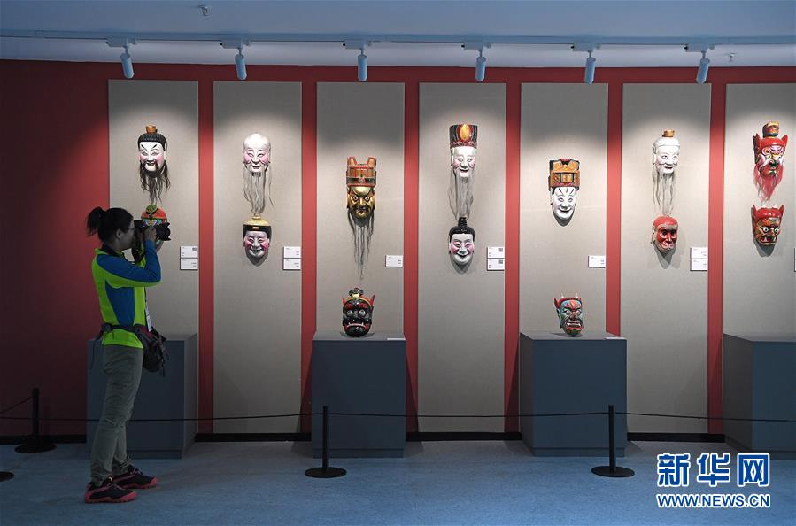 9月27日,参观者拍摄面具展品。 新华社记者 万象 摄