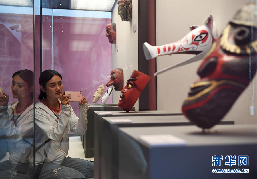 9月27日,参观者拍摄面具展品。 新华社记者 万象 摄