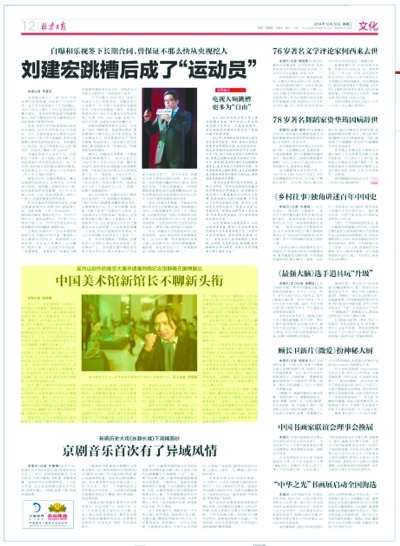 《北京日报》近年来对吴为山本人及中国美术馆举办的重要展览报道版样。
