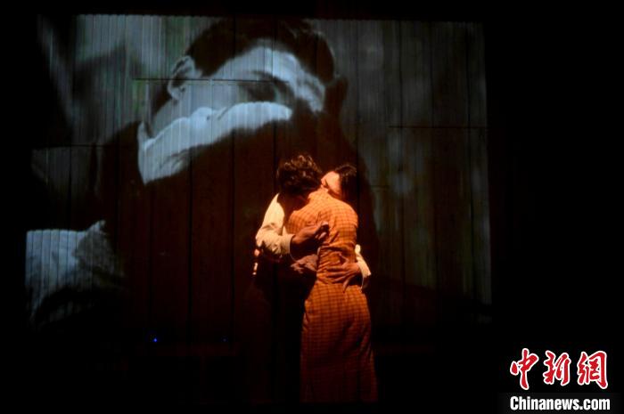 在舞台上,除了演员的表演,老影像、现场拍摄也是非常重要的元素。铛铛车变化出的置于舞台两侧的“屏幕”,通过现场拍摄将“老赵”“杨小姐”的感情线进行特写,也通过投射老影像和演员表演的互动,为故事增添了更多趣味。这种运用电影画面与戏剧舞台表演有机融合的导演手法,在重现经典打开记忆的同时,又以间离方式展开思辨开放的现实论题,旨在表达每一代青年都会面临他们自己的挑战,都需要与命运抗争,克服一切困难,拥抱希望。